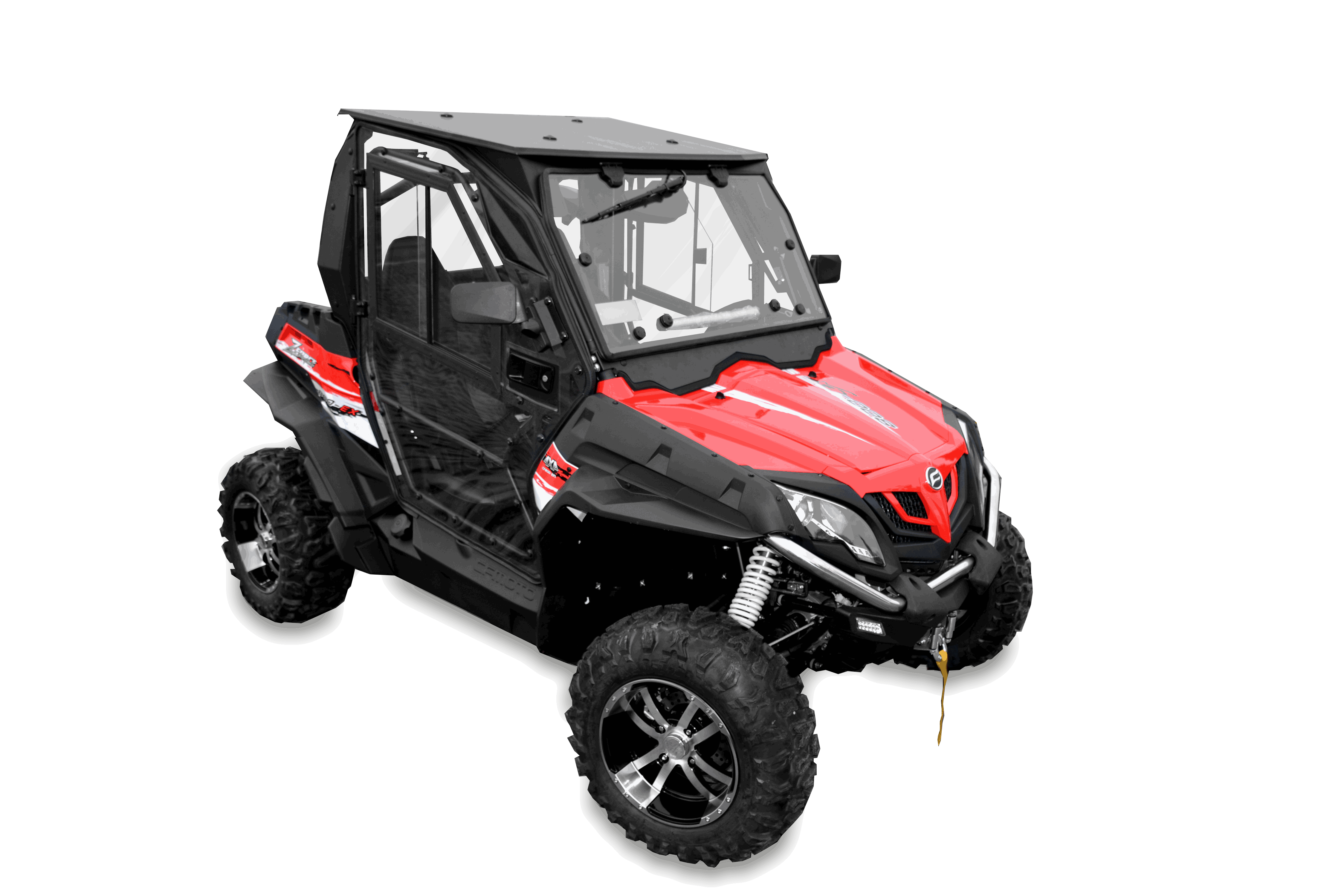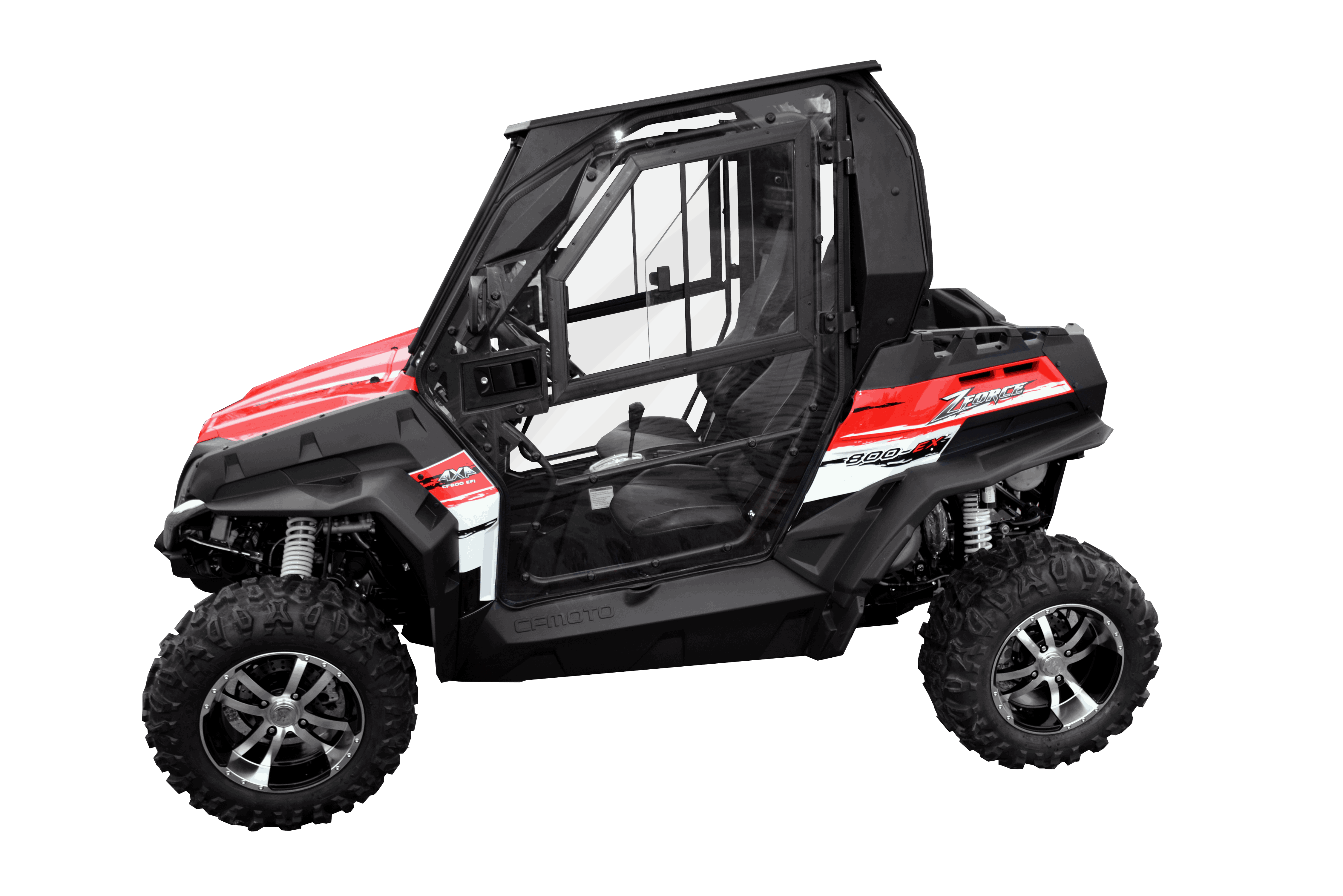 Dørene på hver side er enkle å ta av viss man ønsker en litt mer åpen løsning. Dørene kan også låses. Åpningen på døren er begrenset med gassdemper. I dørene er det et mindre manuelt skyvbart glassvindu for ekstra ventilasjon