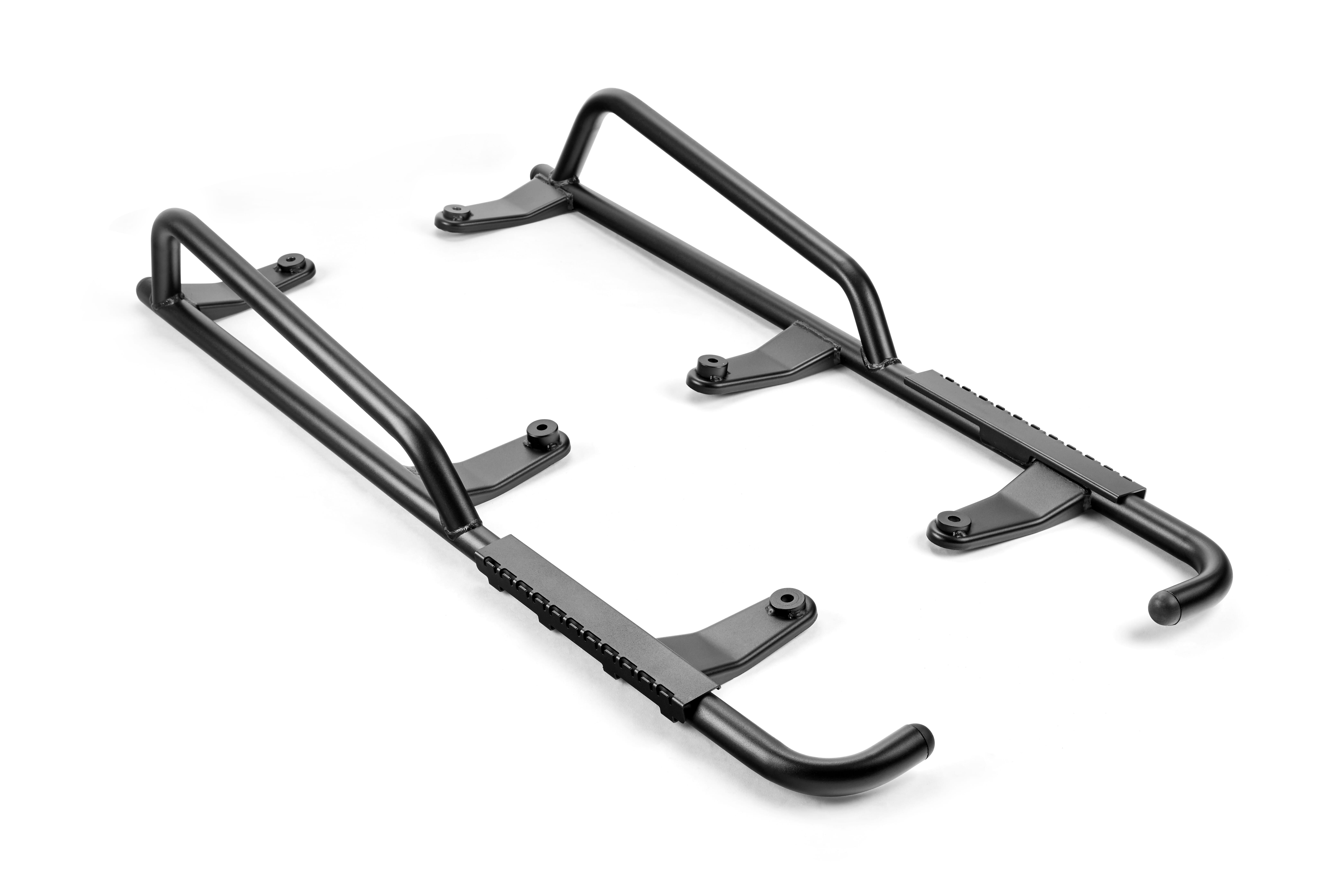 Beskytt sidene på CFORCE 600 mot skader i krevende terreng. Med sidebeskyttelse løfter du utseendet til UTV-en samtidig med at den beskyttes mot støt og slag. Produsert i svartlakkert stål med enkel montering. Spesialtilpasset originaltilbehør fra CFMOTO til CFORCE 600 med god passform.