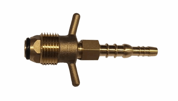 Overgang fra POL med gumminese og vingemutter til 8mm slangesokkel.