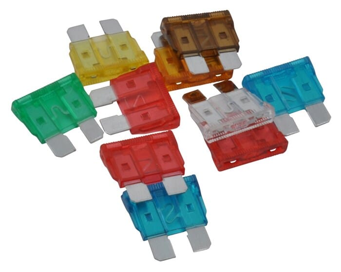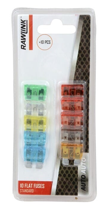 Flatsikringer Sortiment med vanlige flatsikringer til bil. Sortimentet inneholder: 1x5A, 1x7,5A, 3x10A, 2x15A, 1x20A, 1x25 A og 1x30A.