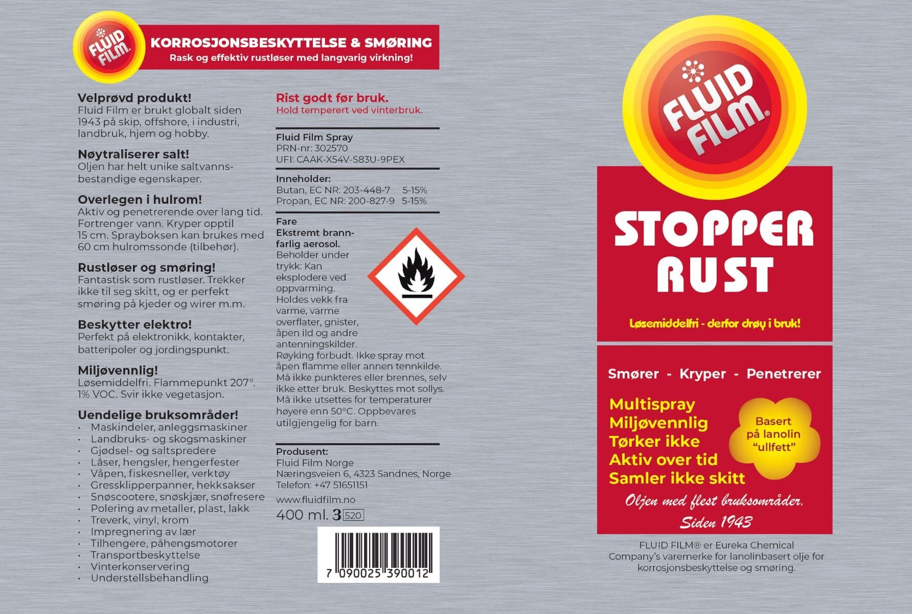 Fluid Film Spray erstatter over 35 produkter! Fluid Film Spray er som regel bedre enn følgende produkter: Universalspray, rustløser spray, antirustspray, understellsmasser, hulromsspray, rustolje, låsolje, kjedespray, elektrospray, elektronikkspray, polfett, våpenolje, kruttløseolje, stokkolje, våpenrens, monteringspasta, anti-seize fett, wireolje, vaselinspray, silikonspray, skjæreolje, universalolje, symaskinolje, lærimpregnering, kobberfett, metallpolish, snelleolje, sprayfett, oljespray, plastpolering, aluminiumpolish, rustfritt stål polish, aluminiumspasta, oljekanne, trepolish og bumper-shine.