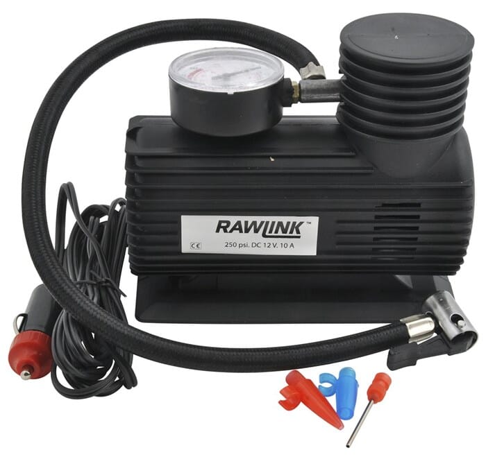 Kompressor mini 12 volt Med tilkopling for sigarettenner. Pumper bil, sykkel, båt, m.m. Leveres komplett med ledning, luftslange og 3 løse nipler, ass.