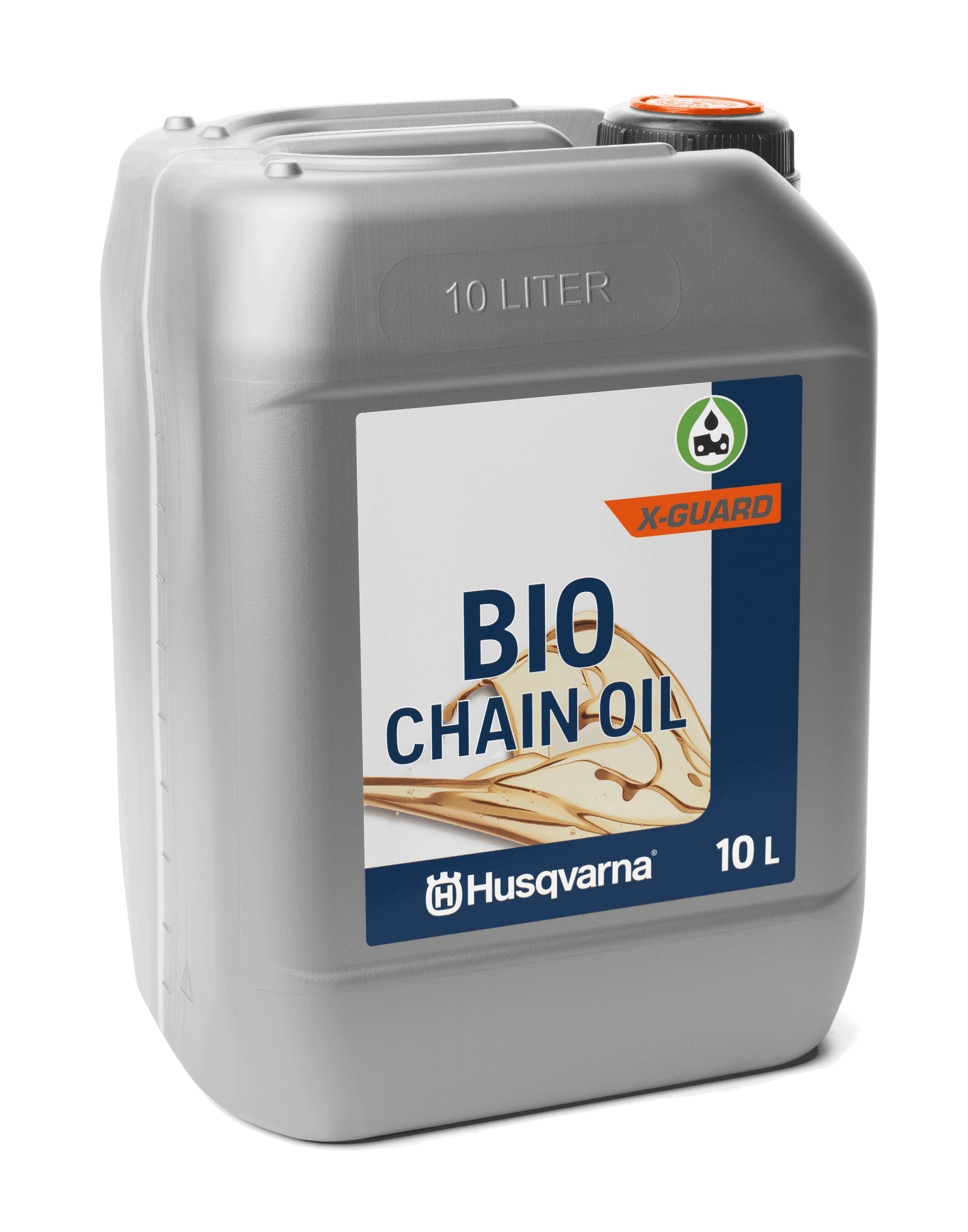 X-GUARD BIO kjedeolje fra Husqvarna er en premium bio-kjedeolje basert på fornybare råvarer. X-GUARD anbefales som en helårs kjedeolje med smøring i beste klasse. På grunn av klebrigheten kan oljekonsumet reduseres uten risiko for økt slitasje. Det gir også minimal mengde rester på maskinen. X-GUARD har en ekstremt høy viskositetsindeks, noe som betyr at viskositeten varierer mindre med temperatur og kjedeoljen fungerer utmerket også under kalde forhold. X-GUARD BIO kjedeolje har meget gode anti-korrosive egenskaper som gir meget god lagringsstabilitet etter bruk av produkter. Produktet er lett biologisk nedbrytbart i jord og vann, ikke giftig for mennesker eller miljø. EU-miljømerking sertifisering gjør det enkelt å vite at produktet er både miljøvennlig og god kvalitet.