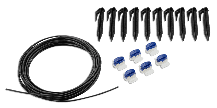 Hvis det skulle oppstå en mekanisk skade ved et uhell med grenseledningen, er dette det ideelle settet for å reparere mindre brudd. Settet er også svært praktisk hvis du må forme grensen på nytt på grunn av mindre justeringer av plenområdet. Designet for å gjøre det enkelt å få en sikker installasjon. Inkludert 5 meters grenseledning, 6 koblinger og 10 stifter.