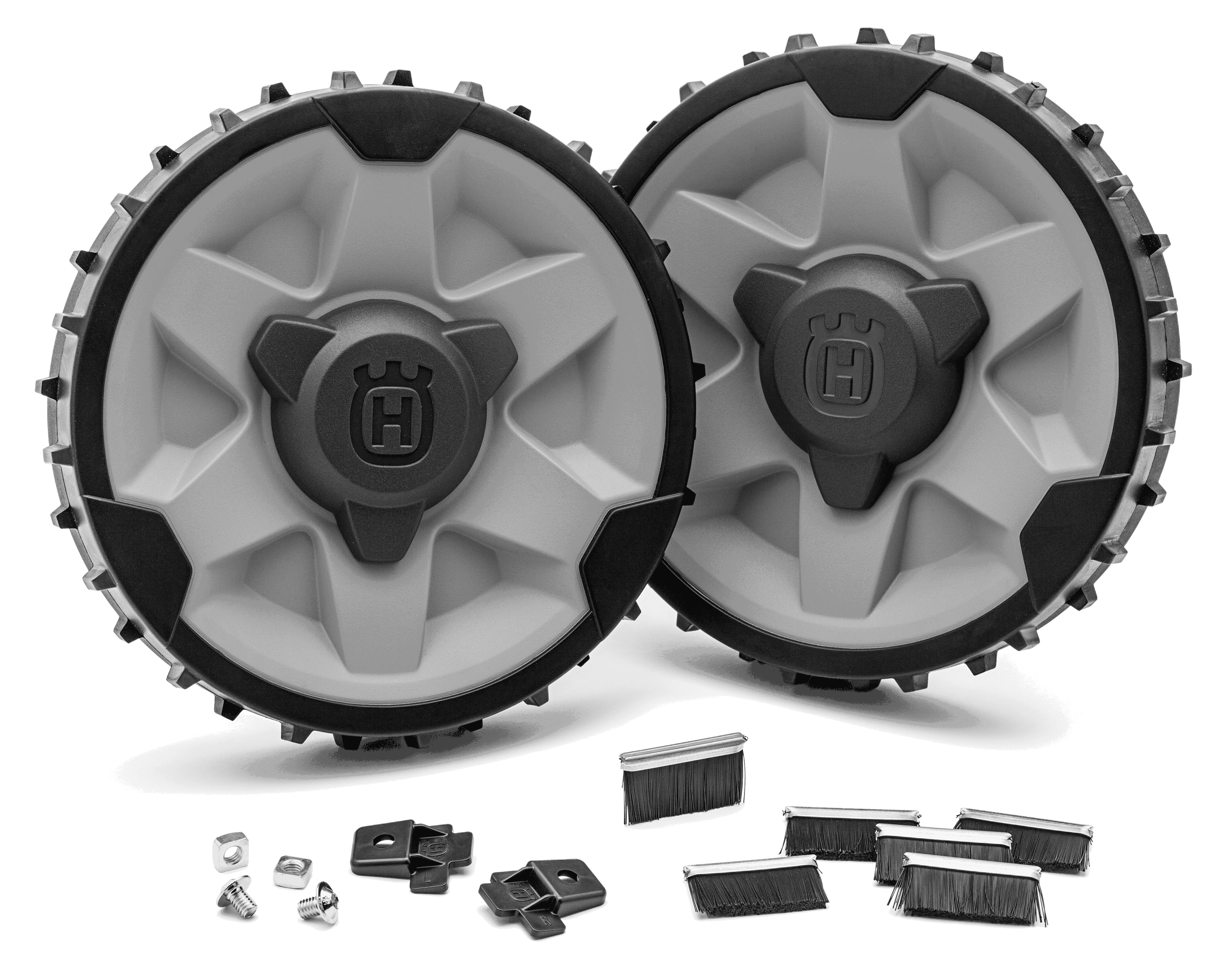 Sett som inneholder tunge bakhjul og børster for god framkommelighet i vanskelig terreng