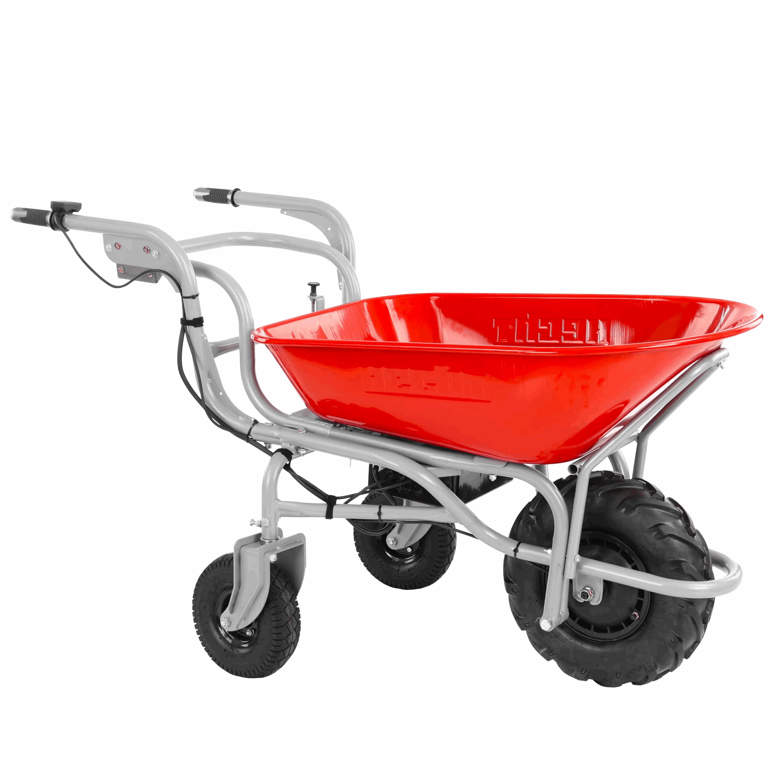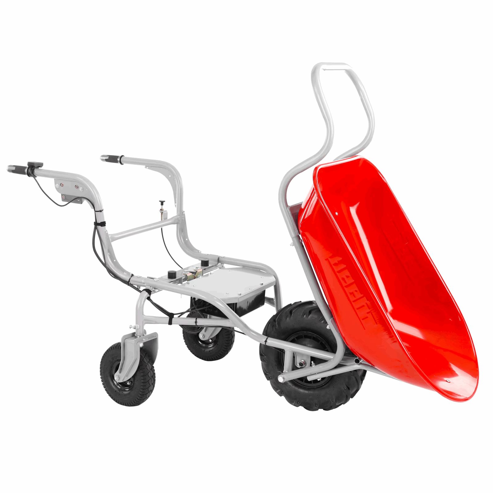 Hecht Elektrisk Trillebåre med tre hjul gjør det enkelt å transportere tyngre last over lange strekninger og i ulendt terreng. Trillebåren er utstyrt med et kraftige luftfylte hjul og kan frakte 100 liter opptil 12 timer. Makshastigheten er 6 km i timen og bredden er kun 70 cm som gjør at den kommer til de fleste plasser. Trillebåren er et perfekt hjelpemiddel for når lasten blir for tung eller over lengre økter.