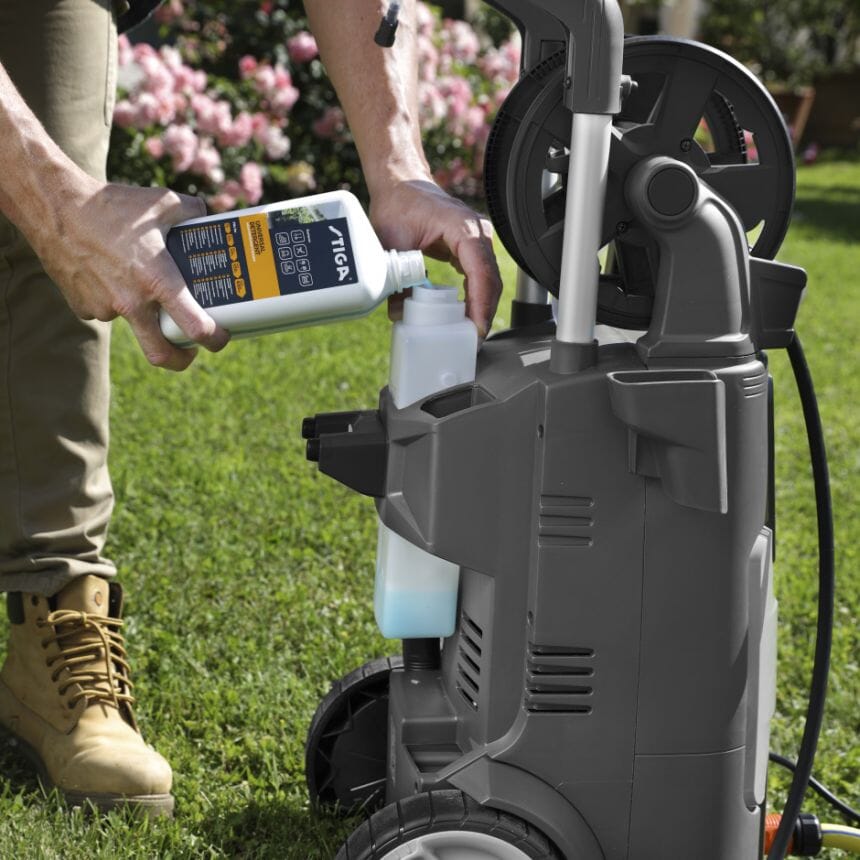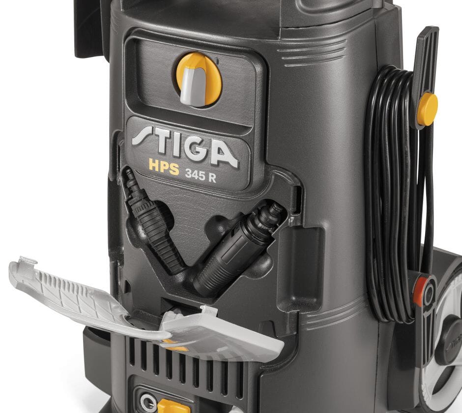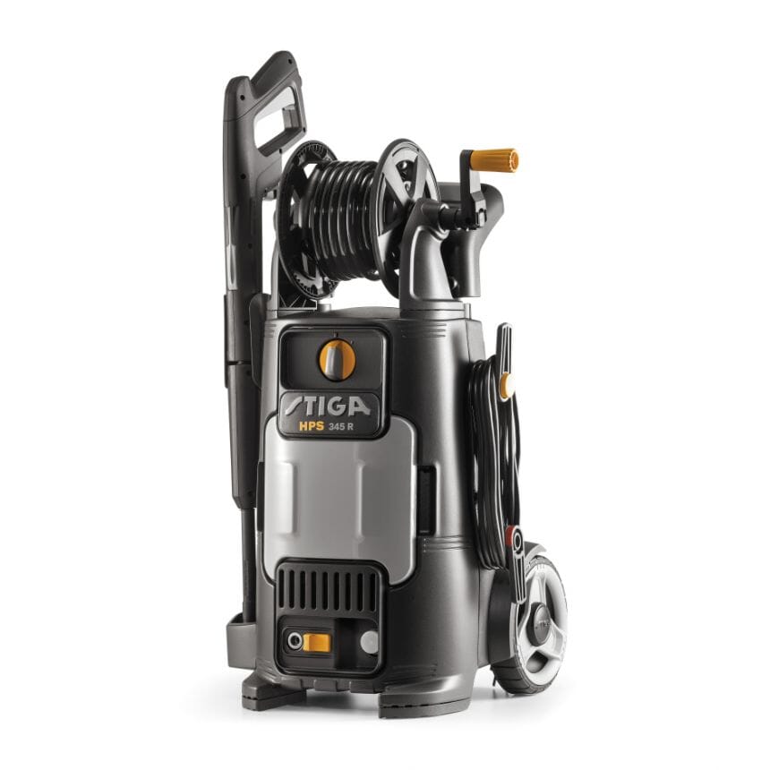 STIGA HPS 345 R er en kaldtvannsproduserende høytrykksvasker som er konstruert for å rengjøre mellomstore overflater komfortabelt og enkelt. Denne høytrykksvaskeren drives av en 2100 W elektrisk induksjonsmotor som opererer med et maksimalt trykk på 145 bar og en strømningshastighet på 450 l/t. Høytrykksslangen som medfølger, er 8 meter lang. Den er lett, svært stabil og lett å flytte rundt med to gummibelagte hjul og et teleskophåndtak med et mykt grep. HPS 345 R har en slangespole og et praktisk oppbevaringsrom for deler og tilbehør. HPS 345 R er ideell for moderat utfordrende rengjøringsoppgaver på en rekke gjenstander og overflater, inkludert hageutstyr, terrasser og trinn, sykler, motorsykler, biler, fortau, gangstier, tregjenstander og verktøykasser.