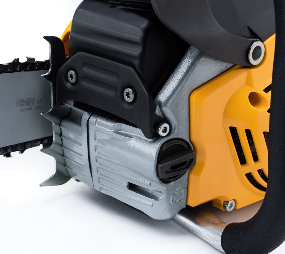 Motorsag med 42,4 cc (1,9 kW) bensinmotor og 40 cm (16") sverd.