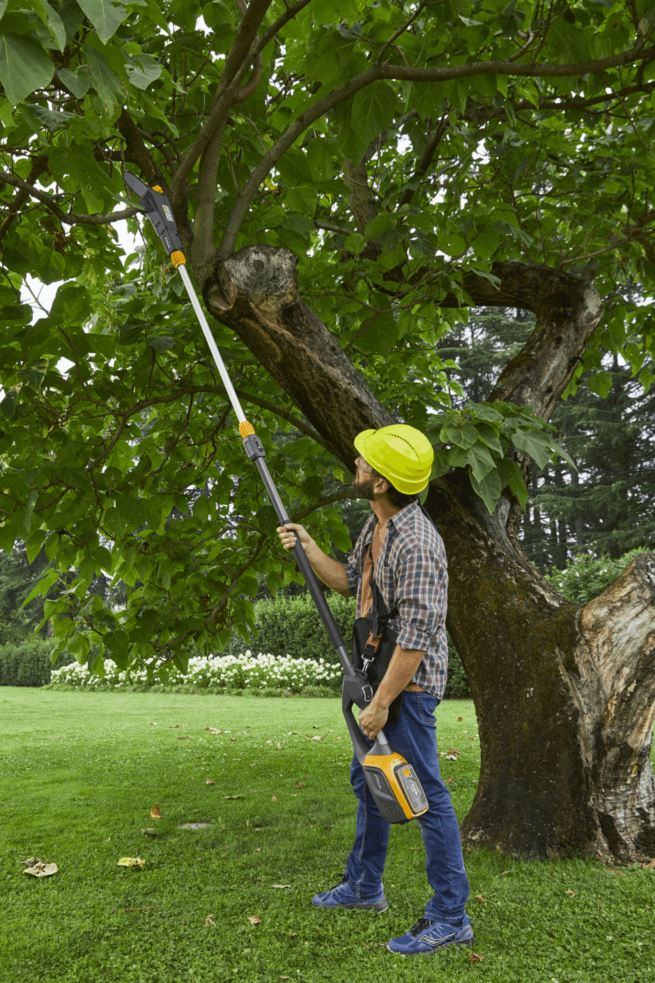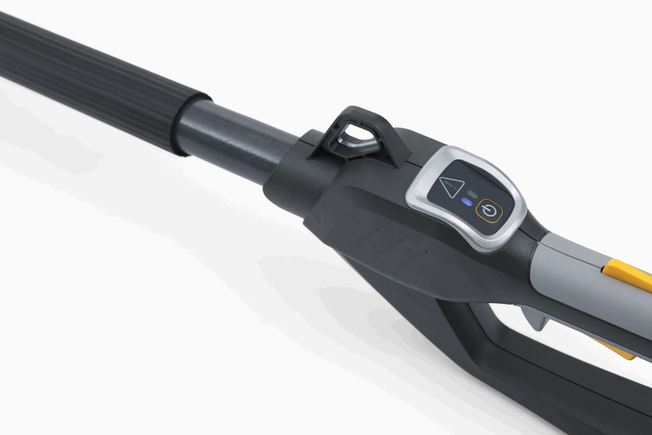 Glem alt om stiger og risiko ved klatring i trær – nå kan du lett nå høye grener og toppen av høye hekker fra trygg avstand på bakken! MT 500e Kit enkle, batteridrevne multiverktøy gir deg høy rekkevidde når du klipper og beskjærer - uten støy og bensinlukt. Multiverktøyet er drevet av et 48 V 2 Ah batteri, har et effektivt dobbeltsidig blad på 46 cm som er laserskåret og 25 cm sverdlengde som skjærer jevnt gjennom hagens trær og busker. MT 500e Kit leveres med en forlenger på 75 cm, som gir en rekkevidde på opptil 4 m med beskjæringstrimmeren og 4,3 m med hekksaksen. Det roterende håndtaket har 6 posisjoner som kan dreies 112°, mykt gummigrep og en selekrok, så du er sikker på alltid å ha den mest komfortable og ergonomiske arbeidsvinkelen. For ett presist og sikkert kutt har MT 500e Kit en støtfanger under styrestangen for å kunne lene seg mot grener mens du jobber.