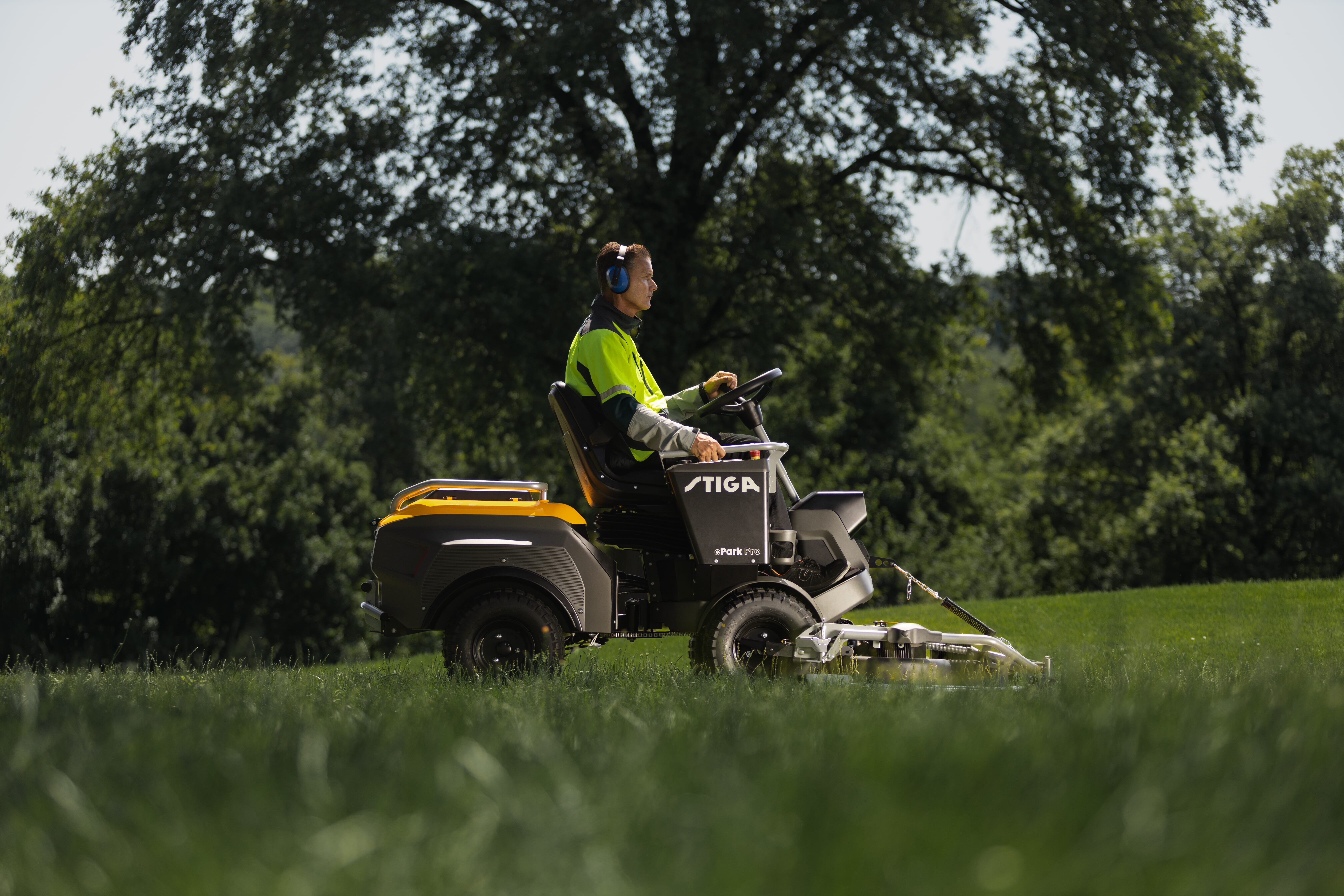 STIGA ePark Pro er en helelektrisk frontklipper laget for profesjonell drift på store områder. Med plass til seks batterier kan den håndtere opptil 27 000 m² i Multiclip-modus. Det modulære ePower Pro-batterisystemet gir praktisk talt kontinuerlig drift, mens kombinasjonen av Combi-klippeaggregatet og STIGAs 50/50 leddstyring gir svært god manøvrerbarhet og klippekvalitet – uten utslipp.
