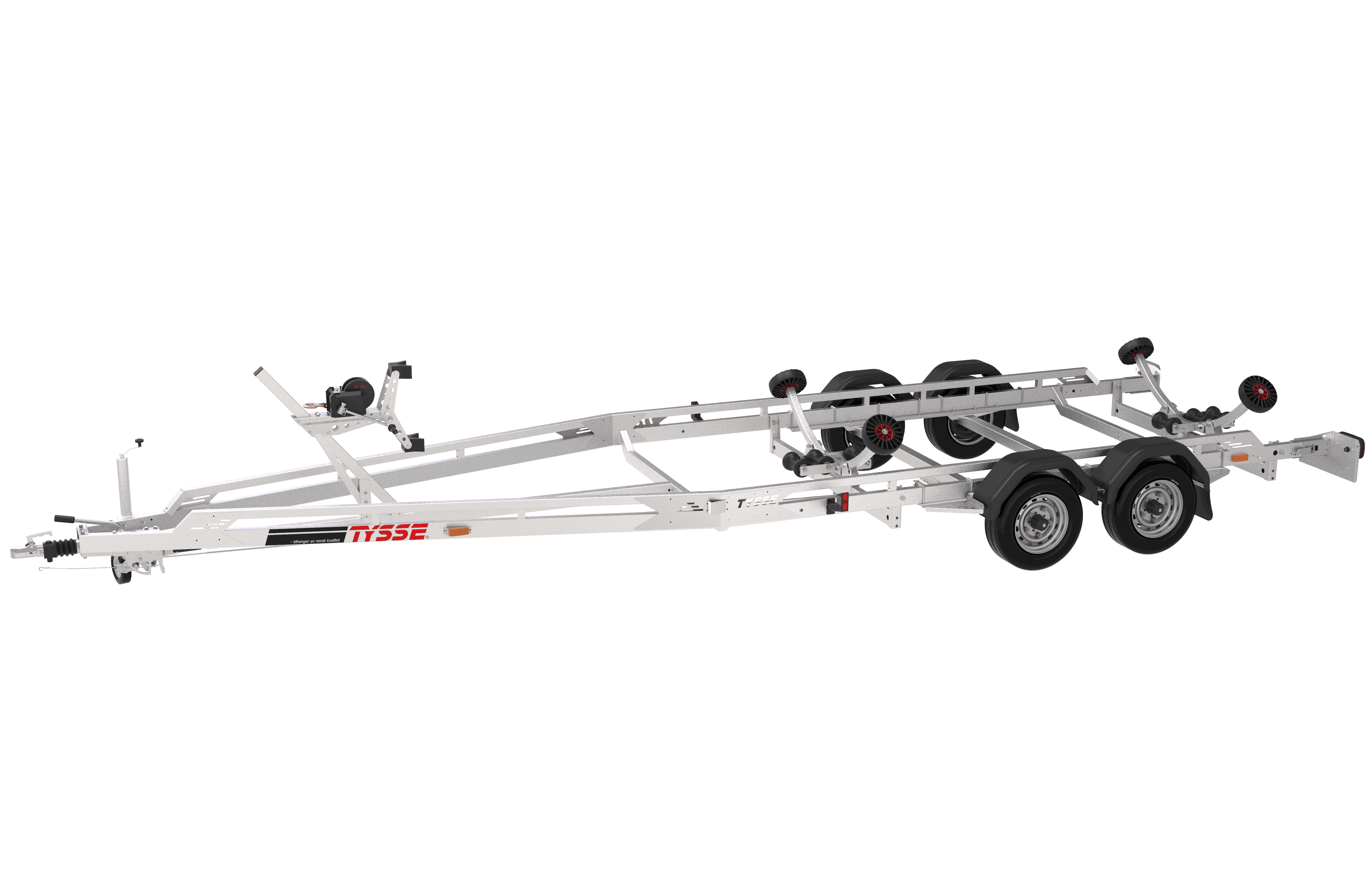 Modell 6426 leveres med brems, LED-lys, selvjustrende vugger og en svært kraftig baugstøtte. Svært kraftig dobbel ramme som er helsveist og varmgalvanisert. Passer for inntil 26 fots båter. Vuggeløsning som vinkler seg etter skroget på båten når denne treffer første kjølrull, og ved opphaling vil båtenpresse ned kjølruller samtidig som vuggearmene presses inntil skroget for optimal støtte under hele opptrekket. Her er det ikke behov for noe manuell justering underveis. Store kjølruller med gode rulleegenskaper og skråkant mot senter på rull gir god styring og sentrerer båten på kjølrullene, i tillegg til solide sidestøttehjul i gummi gir dette båten et skånsomt opptrekk eller sjøsetting. Videre leveres Tysse båthenger med plastskjermer som også gjør at båten ikke er utsatt for skarpe kanter fra hjulskjermene. Svært lett betjening av lyspanel som svinges lett til siden før båthenger rygges ned mot vannet. I front er båthenger 6426 utstyrt med en justerbar baugstøtte og annerkjent Goliath-vinjs med reim. Mange justeringsmuligheter av v-block mot baugen på båten for å finne den optimale støtten slik at båten ligger godt forankret frem mot baugstøtten. Torsjonsaksler fra Knott og rustrfrie bremsewirer som gir lengre levetid er også standard. Hvilke opplysninger er viktig å oppgi ved kjøp av båthenger? Lengde på båt er rådgivende. Det anbefales ikke å strekke grensen av hva henger er anbefalt for. Da mister man justeringsmuligheter i lengderetning grunnet tyngdepunkt. Tyngdepunkt på båt må ikke ligge bak aksling/akslingene. Kulevekt skal være 50-70kg. Tyngdepunkt kan variere mye med motorplassering. Vekt som ofte oppgis på båt er tørrvekt fra fabrikant. Den reelle vekten vil være høyere. Alle båter trekker vann over tid og øker dermed egenvekten. Vann i tanker, drivstoff, anker og annet utstyr øker vekten ytterligere. Avhengig av størrelsen på båten, bør en legge til 50-300kg. Det anbefales uansett ikke å legge seg på grensen av nyttelast, da vekten ofte kan være usikker.