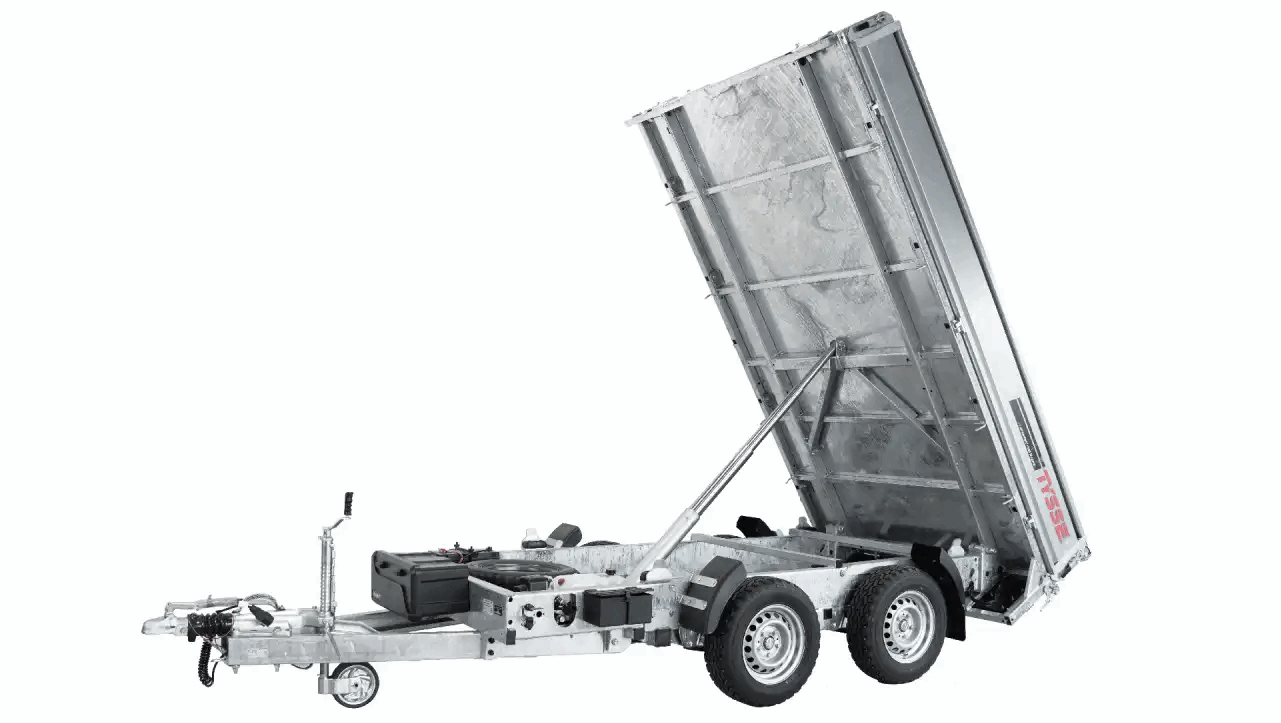 Bakovertipp med kassemål på 303x178 og med solid nyttelast på 2400kg. Stålbunn som tåler kraftig behandling av gravemaskinskuff. Ingen skjøt på karmer gjør at karmene er glatte innvendig slik at du slipper at masser blir hengende igjen i sidekarmer når en tipper. Tippsylinder er overdimensjonert for vekten tilhenger er beregnet på, som igjen gir økt levetid. Bladfjærer Dual DriveTM Hydraulisk tipp drevet av en innebygd 12v batteripakke m/ manuell reserveløsning Markesledende Knott aksler og bremser. Massive aksler og rustfrie bremsewirer Baklem kan hengsles oppe og nede Ekstra forsterket karm foran 55 grader tippvinkel Led Lykter Reservehjul