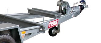 Oppkjøringsskinner som kan justeres i hele bredden på tilhenger. Under transport blir disse plassert på tvers fremme på drag.