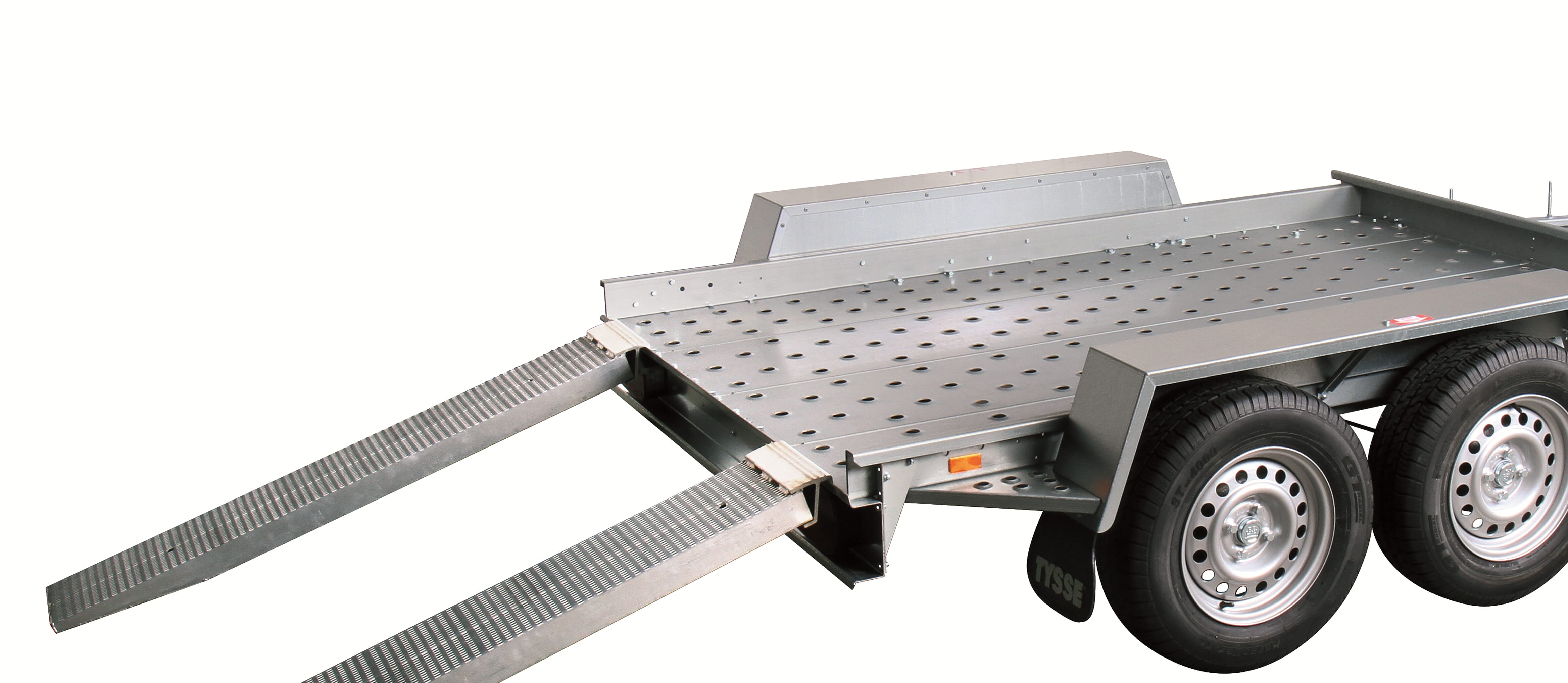 Oppkjøringsskinner som kan justeres i hele bredden på tilhenger. Under transport blir disse plassert på tvers fremme på drag.